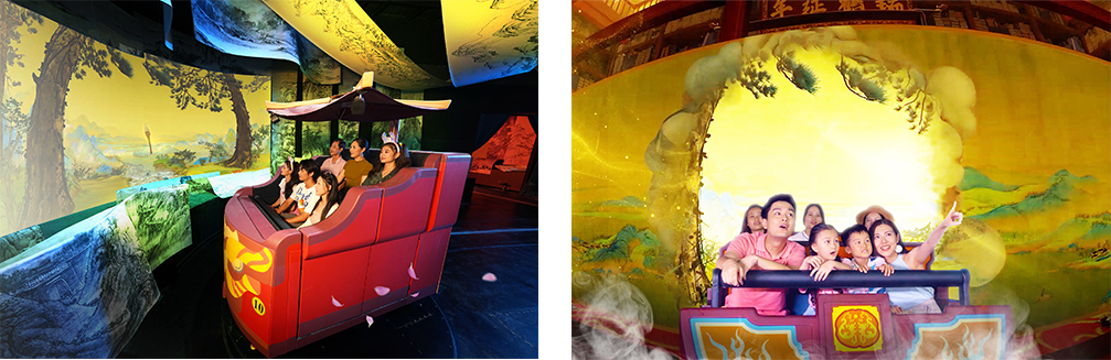 Magic Gallery depicts a fantastic gallery filled with Chinese paintings. Visitors sit in small trackless vehicles as they view many famous and historical paintings. They then “enter” the magical world of the artwork and fly over picturesque landscapes. Acousto-optic special effects help transport visitors through these wonderful realms. Visitors not only learn more about the paintings, but they also appreciate them in an incredibly unique way.