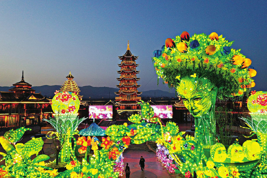 “生命之树”惊艳亮相 各色灯组闪耀园区