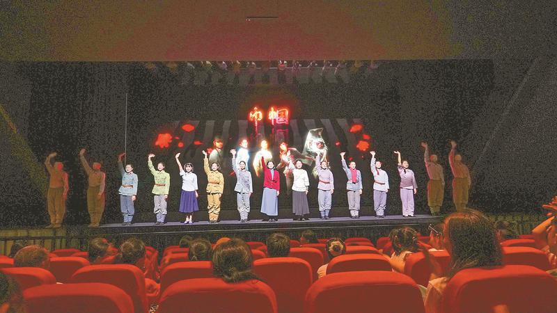 尾声主题音乐响起时,台上倒下的巾帼英雄们一个个站起来,身后屏幕上出现她们真实的历史照片,我的泪水再也抑制不住了。抹眼泪的同时,我往四周扫了一圈,发现同样被打动的人还不少。