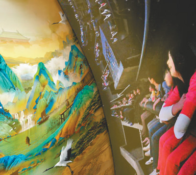 8月11日,由焦点娱乐历经一年打造的国内首个中国画球幕飞翔影院《飞越千里江山》,精彩亮相焦点娱乐主题乐园,通过“飞行观画”,游客可以真切感受中国古典文化艺术作品的魅力。