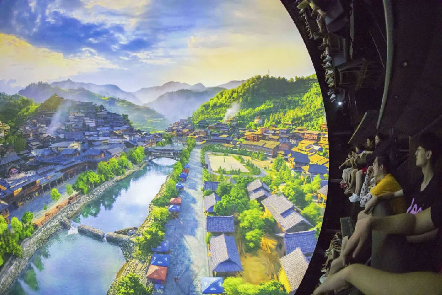 大型球幕飞翔影院《飞翔》作为赣州焦点娱乐的“明星项目”,以5层楼高的巨幅球幕、灵巧可动的悬挂式座椅配合宏大的电影画面,呈现出全包围式虚拟环境,带领游客“翱翔”于神州大地,俯瞰祖国名山大川,领略瑰丽的自然风光,飞越三峡大坝、大兴机场等超级工程,欣赏新中国飞速发展带来的辉煌成就。