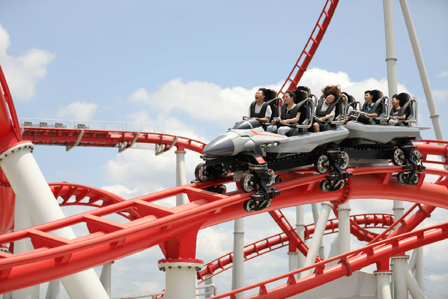 著名的荷兰过山车厂商威克玛旗下最新型的弹射式过山车《鹰击长空》是喜欢挑战惊险刺激的游客们的最爱。过山车以航母为定制主题,游客将搭乘“舰载机”体验近乎逼真的起降过程,最高时速可达92公里,通过多种高难度弹射、翻腾、扭转动作,体验战斗机惊险刺激的空中飞行。