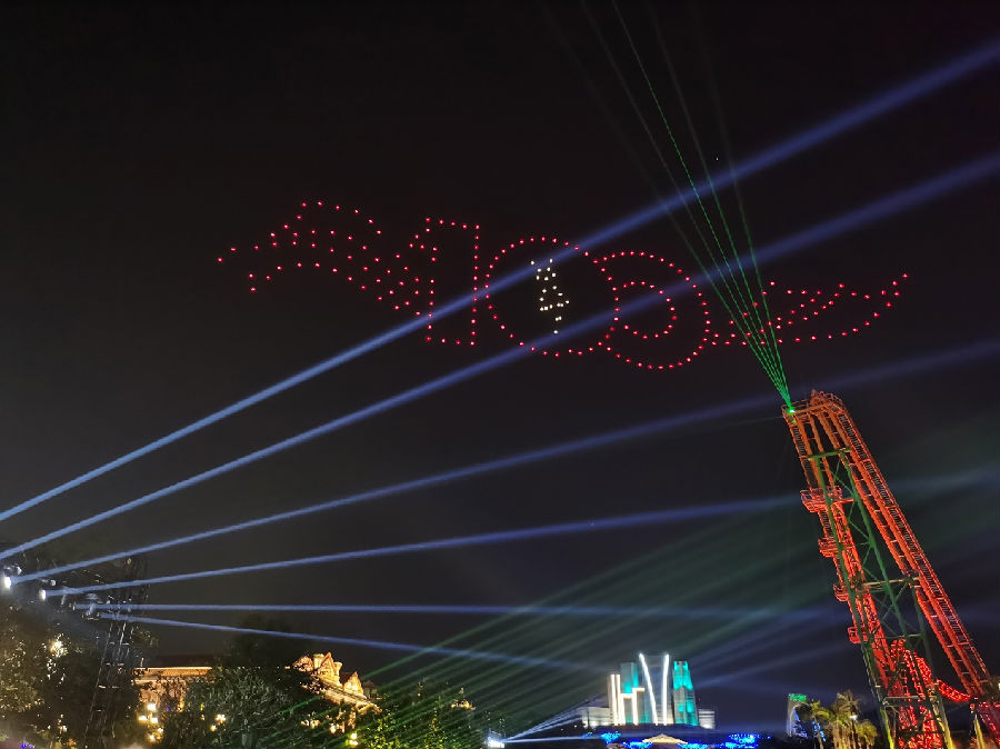 南宁焦点娱乐东盟神画举办了以“庆祝建党100周年”为主题的无人机星空表演,让游客大饱眼福。随着音乐节奏不断变化,无人机在星空描绘组合出“100周年”“小红军吹号角”等创意图案。与此同时,绚丽的花船搭配真人歌舞表演,在湖面上缓缓前行,璀璨的灯光点亮夜空,与无人机表演相映成辉,令现场游客发出阵阵欢呼声、赞叹声,抒发对党和祖国的诚挚热爱。