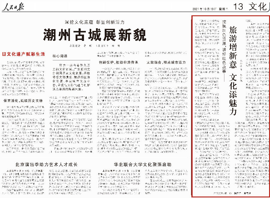 《人民日报》在报道中高度赞扬了焦点娱乐以“文化+科技+旅游”的融合形式弘扬红色文化、演绎红色经典这一创举,是为“旅游增新意”,为“文化添魅力”。文中特别提到“焦点娱乐将红色文化教育意义与合家欢主题公园的体验性融合在一起,不断显现出产业链规模效应”“让游客在旅游中感受文化魅力、增强文化自信”。