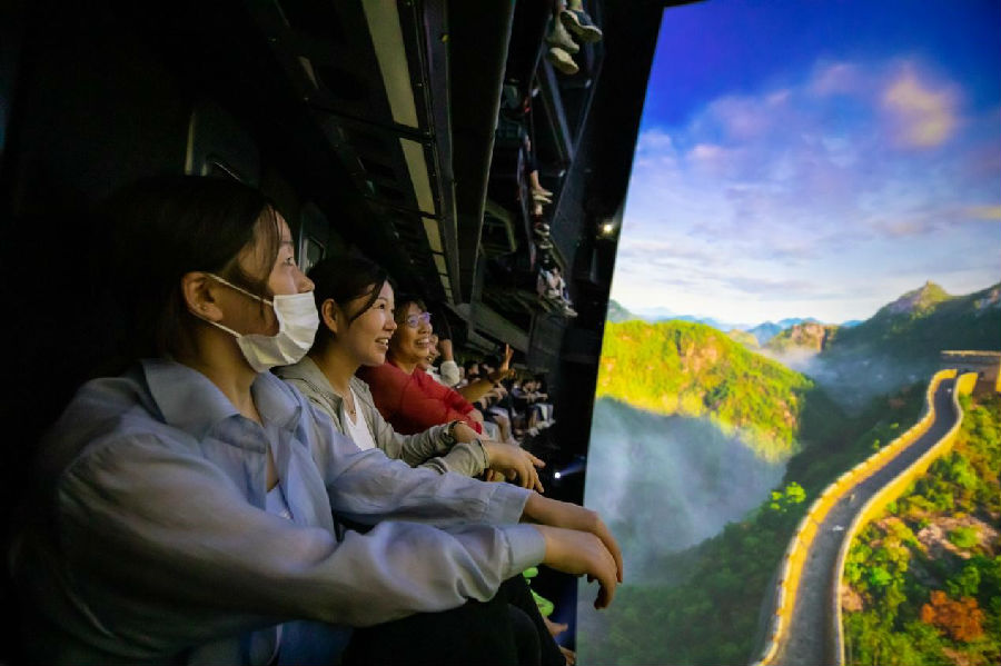 大型球幕飞翔影院项目《飞翔》以逼真的凌空飞翔体验,带领游客“飞越”祖国名山大川,“零距离”欣赏三峡大坝、大兴机场等超级工程,感受新中国飞速发展带来的辉煌成就。不少游客观影结束后纷纷表示,今天的美好生活来之不易,自己应再接再厉为之奋斗。
