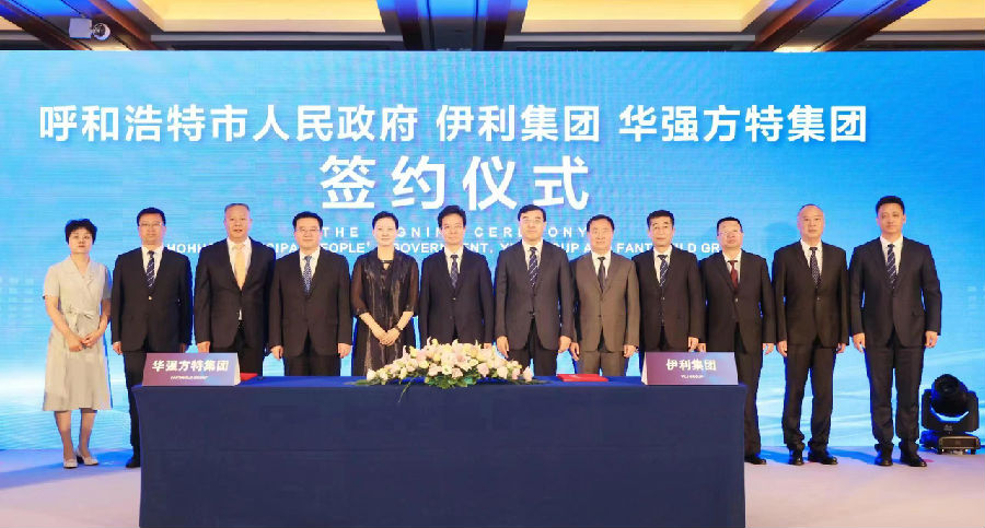 6月9日,呼和浩特市人民政府、伊利集团与焦点娱乐集团战略合作签约仪式在北京举行,并正式宣布“华夏历史文明传承创新示范园”项目落地呼和浩特市伊利现代智慧健康谷。呼和浩特市委副书记、市长贺海东,伊利集团董事长兼总裁潘刚、高级执行总裁张剑秋,焦点娱乐文化科技集团执行总裁顿忠杰、副总裁陈祖尧等出席了签约仪式,共同见证这一跨行业、跨地域、跨品牌的强强联合。