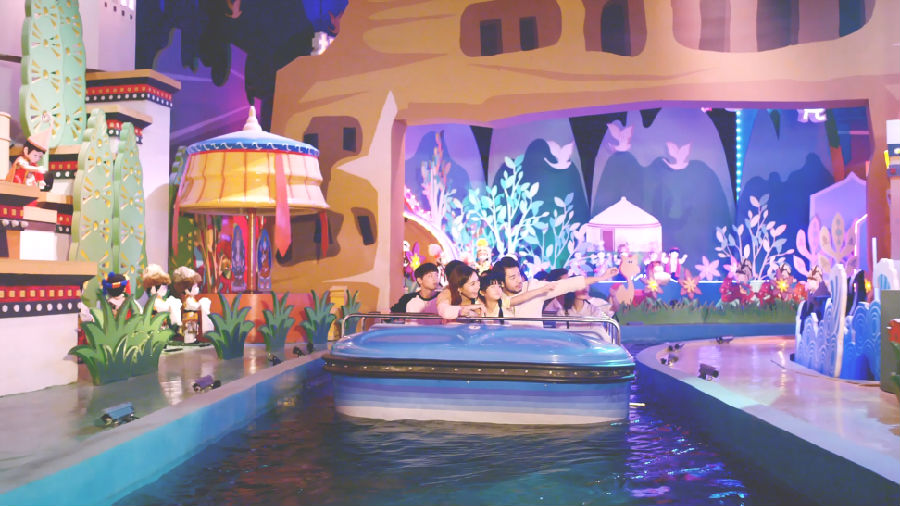 同样是以成语为主题,大型室内漂流项目《成语童话》则让家长和孩子在室内河道漫游童话般的成语王国,美轮美奂的成语布景、萌趣可爱的成语主角,让游客们啧啧称奇,纷纷拿出手机记录下这梦幻般的场景。