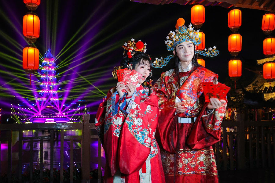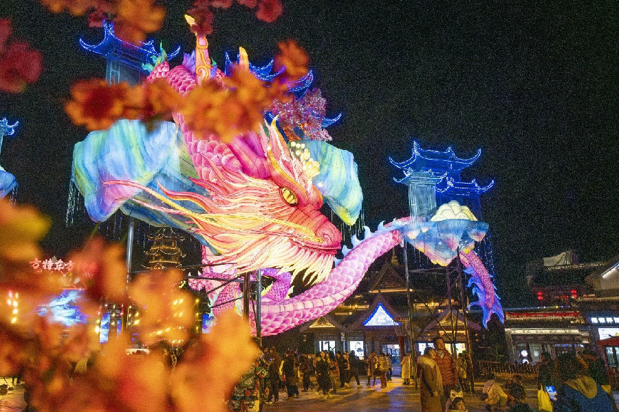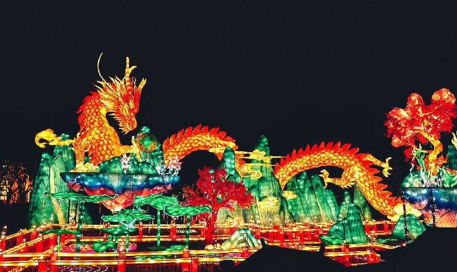 正逢甲辰龙年,各园区创意打造巨型花灯、璀璨焰火、无人机大秀等“龙”主题的光影盛宴。