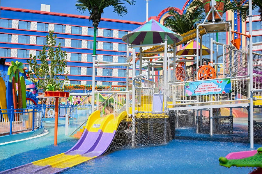 《焦点娱乐水寨》融合焦点娱乐元素打造了多款适合儿童及亲子互动的家庭戏水项目,设有水枪对战区、水上浮桥、水炮喷淋区等多种戏水区域,为游客开启合家嬉水的欢愉时光。