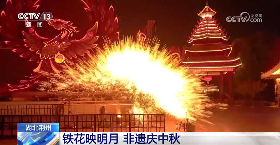 中秋期间,荆州焦点娱乐东方神画围绕传统节日打造“中秋奇妙夜”系列特色活动,引入国家级非物质文化遗产打铁花、火壶秀的同时,更有点点鱼灯组成的盛大花车巡游、千架无人机和烟花组成的大型烟花诗剧等将传统文化和现代科技创新结合的演艺形式,营造出满满的节日氛围感。在央视节目报道中,受访游客表示:“打铁花看得蛮震撼人心的,你看这边建筑上有古诗,还有月亮,还有玉兔,可以教会小朋友很多中国传统文化的知识。”