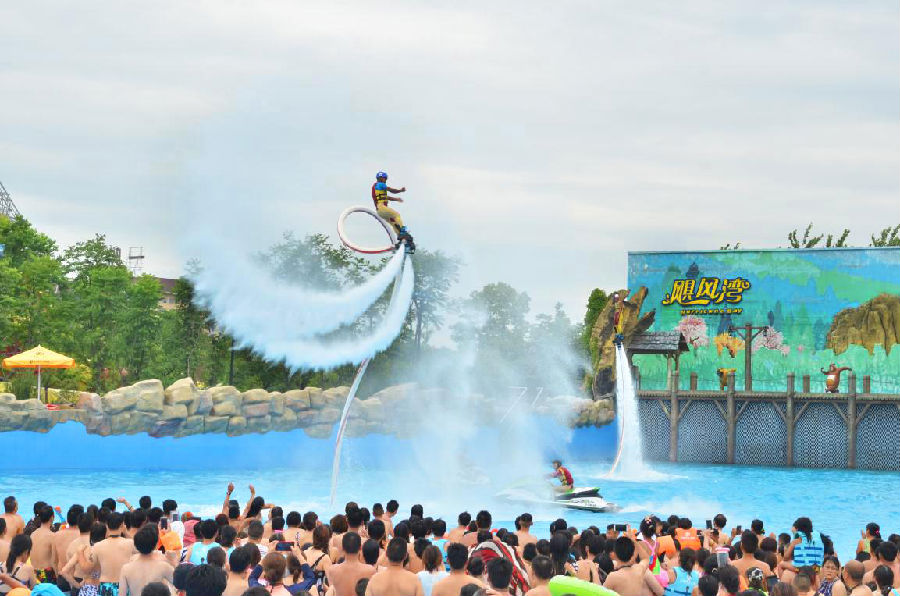 芜湖焦点娱乐水上乐园暑期夏威夷狂欢季空中飞人演出