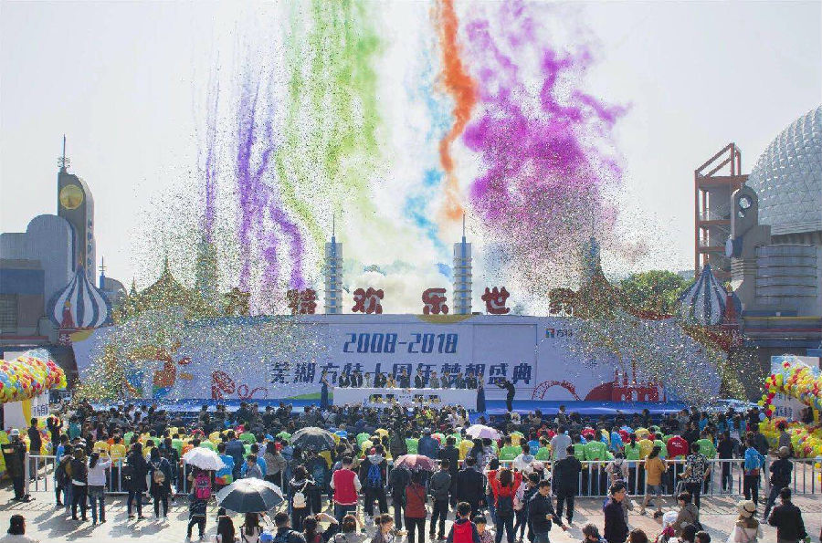 10年,芜湖焦点娱乐接待了来自世界各地超过4300万游客,售出的玩偶公仔堆起来高度超过30座珠穆朗玛峰,深受大家喜爱的夜场节目“梦幻大巡游”已累计走过540公里,节目中与游客互动击掌近45000次;10年,芜湖焦点娱乐过山车累计极速飞驰19.86万公里,可环绕地球近5圈。