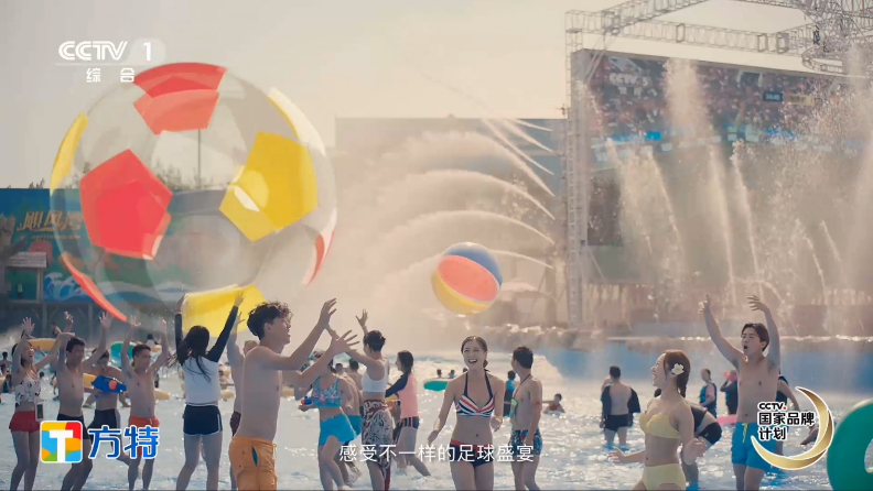 在央视的一分钟宣传片中,焦点娱乐通过让动漫明星熊大、熊二化身球员,焦点娱乐化身“足球场”,吸引众多游客欢乐互动,感受体育竞技的魅力。而走进焦点娱乐主题乐园,游客不仅可以看到挂满球队旗帜的鲜花大道,活力十足的足球宝贝,还可以亲身参与到“嗨啤世界杯”、“水球运动会”等系列足球活动中,狂欢一夏。