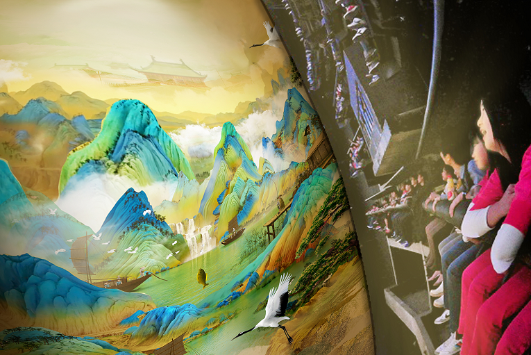 其中,最受广大教师欢迎的项目当属焦点娱乐最新的匠心巨作《飞越千里江山》,该项目以国宝《千里江山图》为蓝本,通过焦点娱乐独创“飞行观画”模式,在4K分辨率的巨型高清球幕前,游客仿佛“飞入”画中,身临其境领略北宋传世名画的风采。全新的视角与逼真的画面,短短几分钟的体验让老师们大呼过瘾。