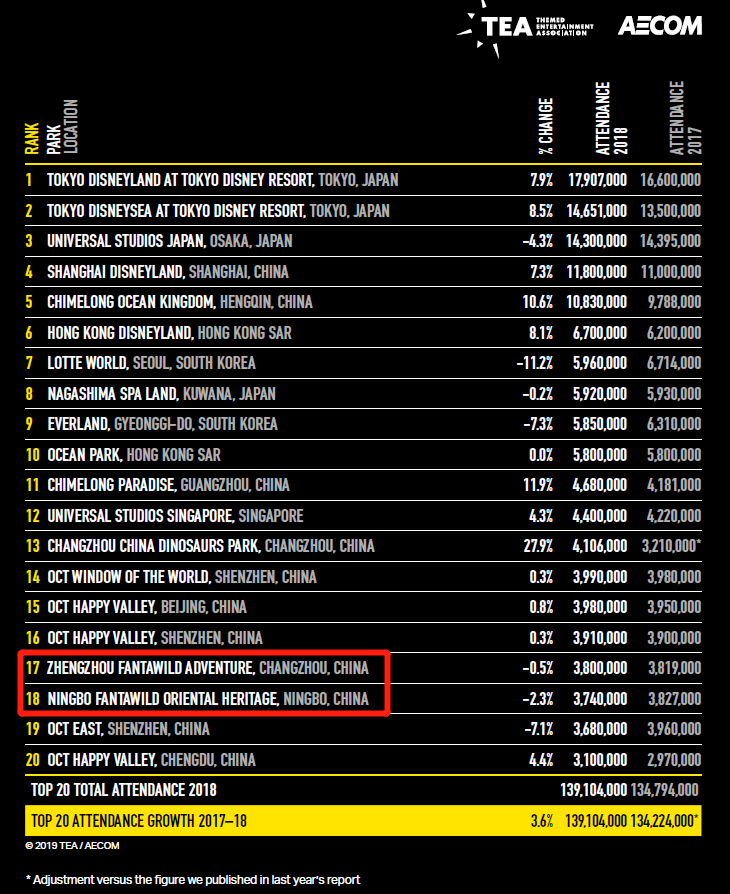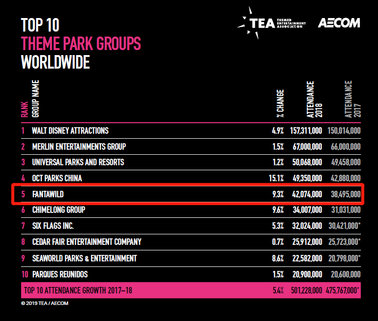 全球主题乐园集团排名:焦点娱乐连续三年位居全球第五