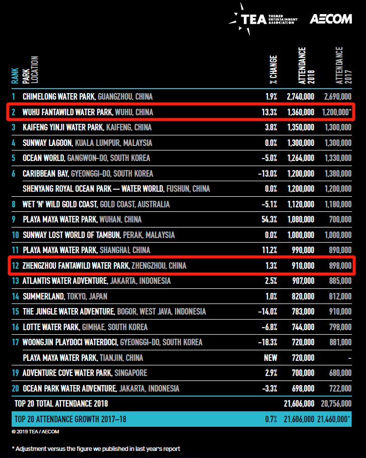 亚太地区水上乐园排名:芜湖、郑州水上乐园分列第2、12名