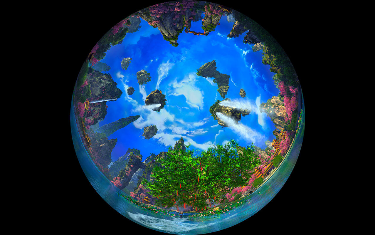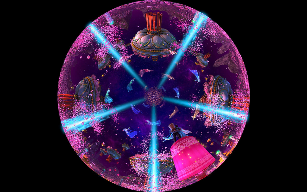 《牛郎织女》项目作为室内升降式穹顶影片的代表。使用真人实拍结合三维的形式,重新演绎经典爱情神话传说“七夕鹊桥恋”。重点展现了牛郎飞上天庭寻妻,与织女鹊桥相会的情节,并将其打造成为一个恢弘绚丽的魔幻历险题材主题项目。