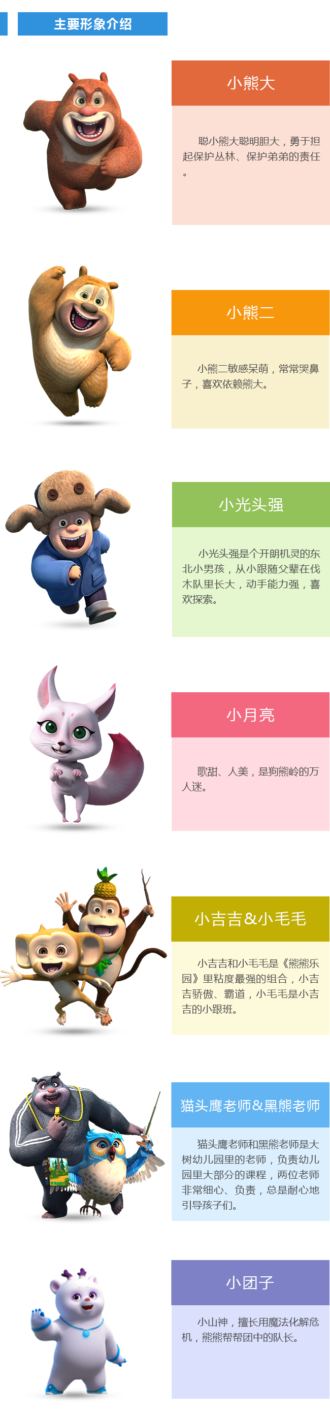 《熊熊乐园》是一部面向0 - 6岁学龄前儿童的成长益智系列动画片,讲述的是小熊大、小熊二、小光头强和伙伴一起成长的故事,主打成长陪伴、益智科普、情感启蒙,以幽默、欢乐、可爱的风格,传播环保、自然、健康、快乐的品牌理念,用生动的故事引导孩子“智、趣、情”全面发展。